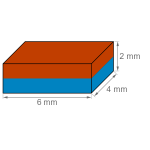 Blokmagnet 6x4x2 mm