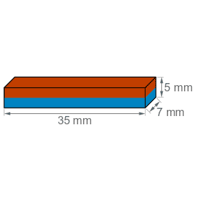 Blokmagnet 35x7x5 mm