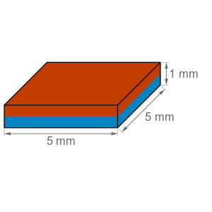 Blokmagnet guld 5x5x1 mm