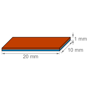 Blokmagnet m/lim 20 styk, 20x10x1 mm